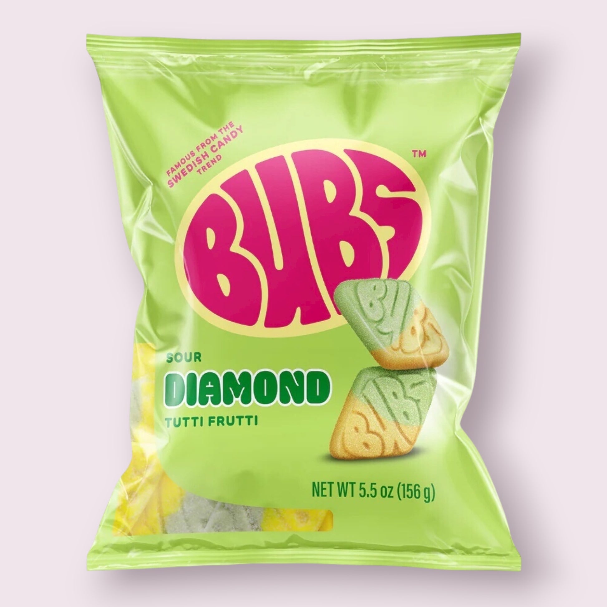 Get ready to pucker up with Bubs Mini Tutti Frutti Sour Diamonds! These tangy Swedish gummies will have your taste buds screaming for more. With a burst of fruit flavors, these little gems are the perfect treat for any sweet tooth.